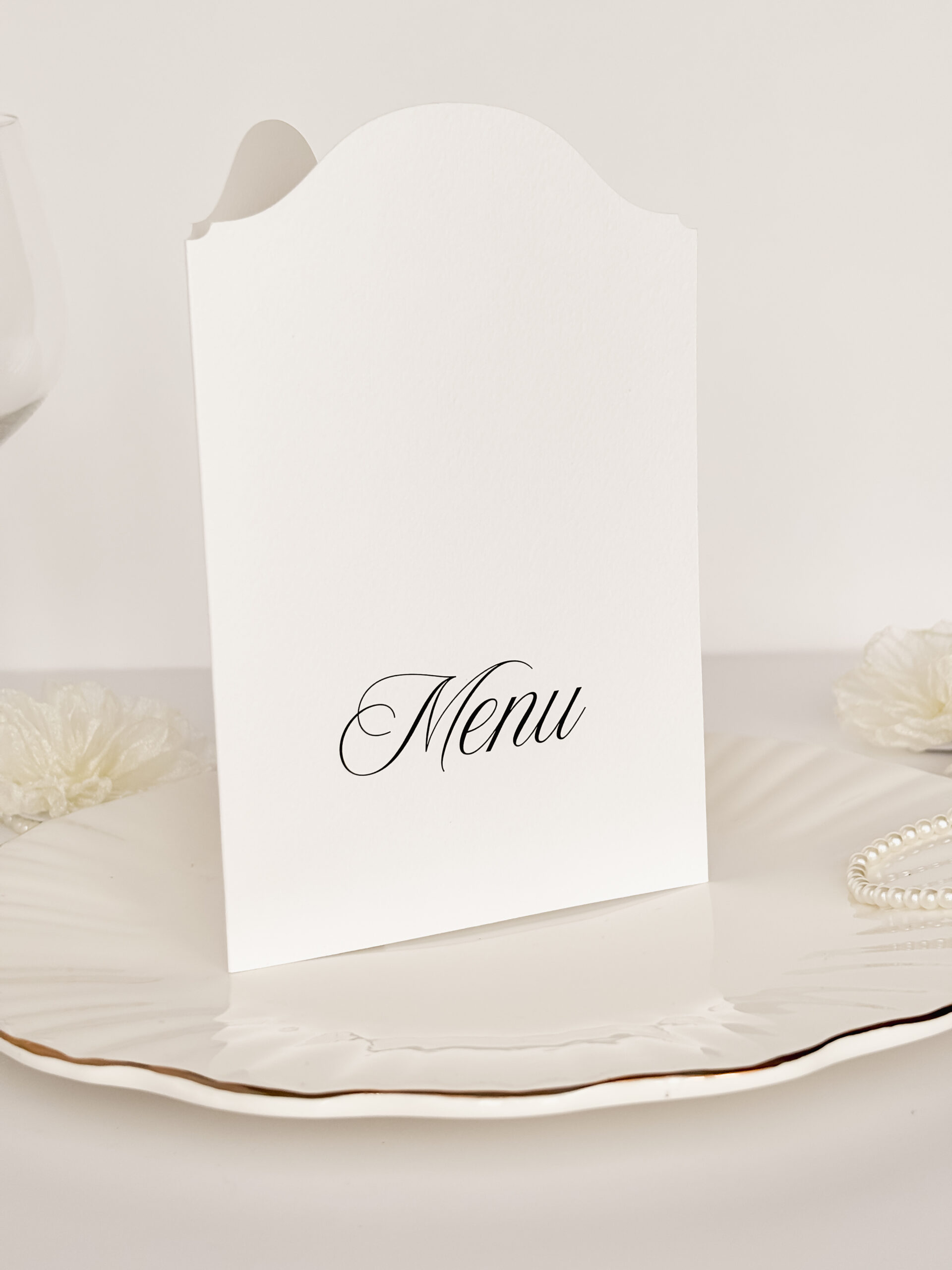 Menu stojące o wymiarach po złożeniu: 12,5 x 18,7 cm, druk na białym papierze fakturowanym o gramaturze 250g.