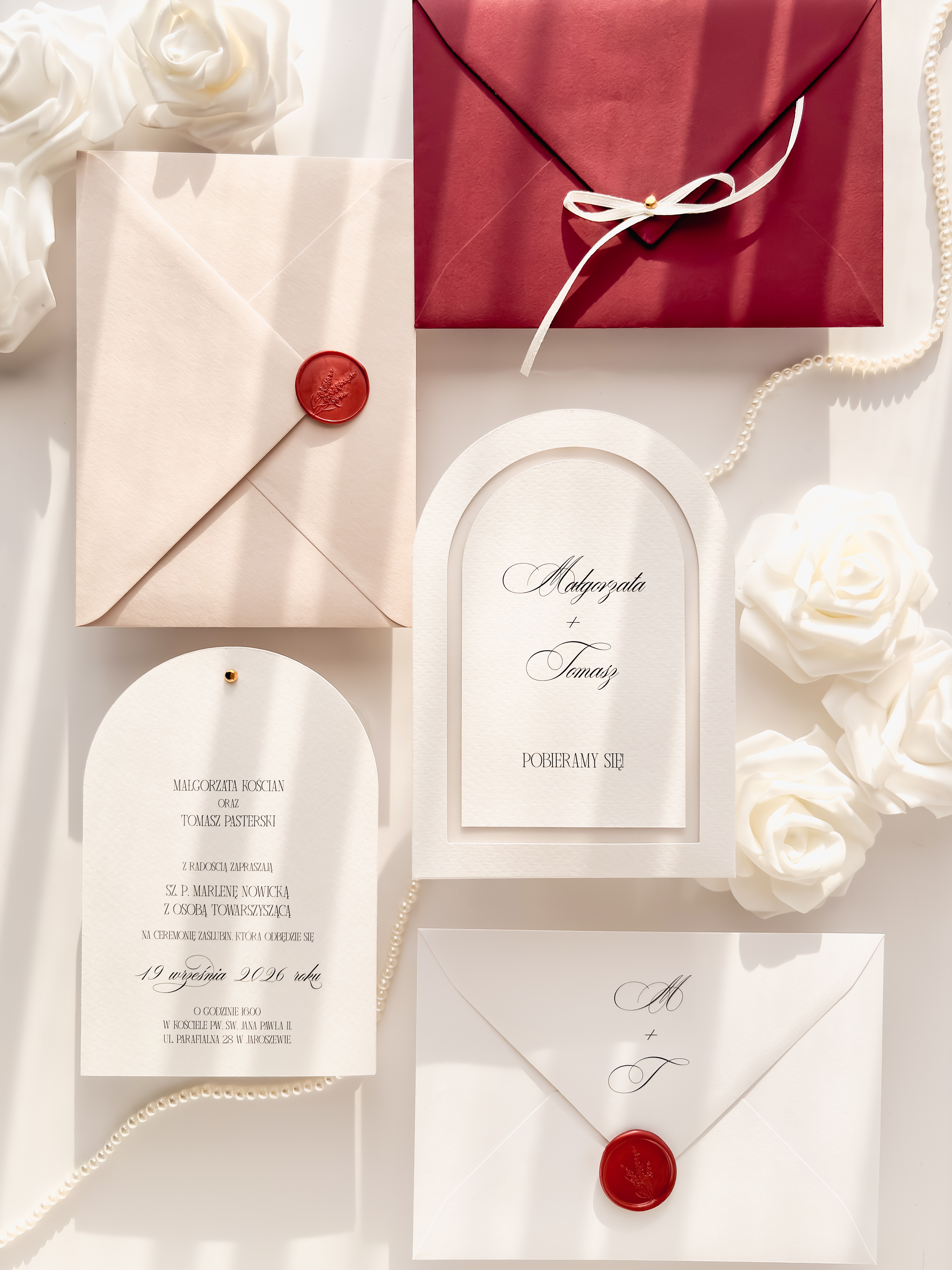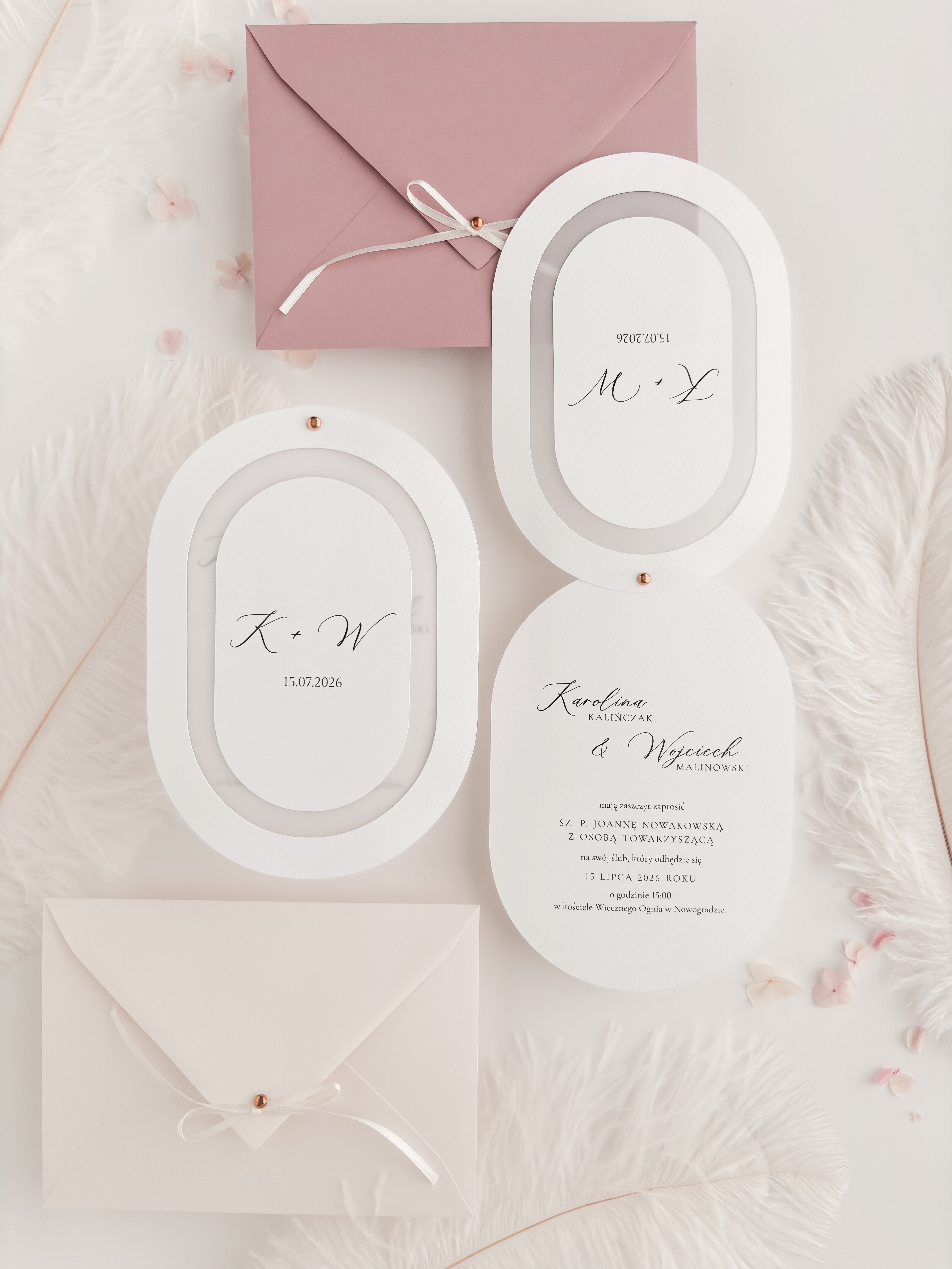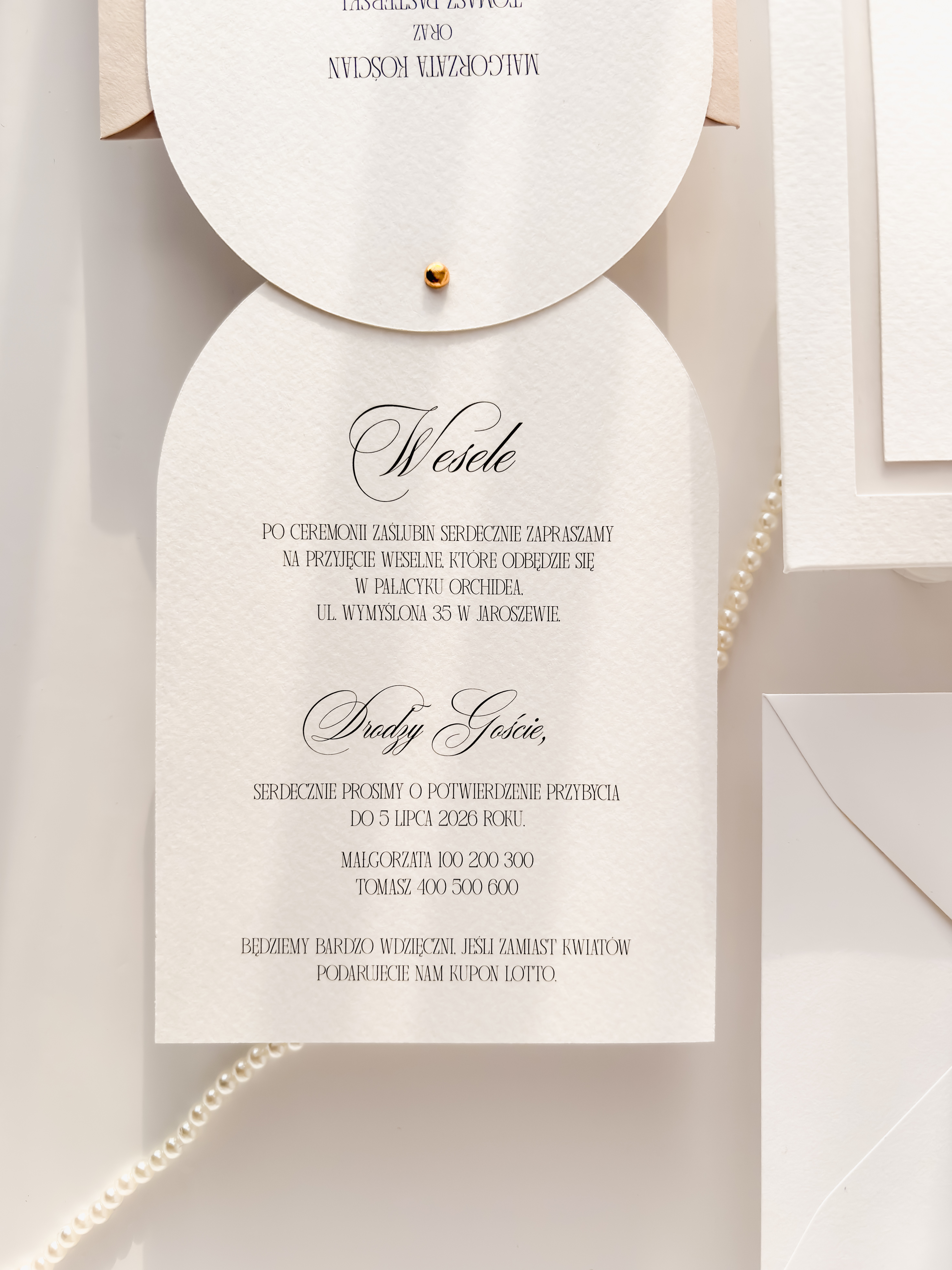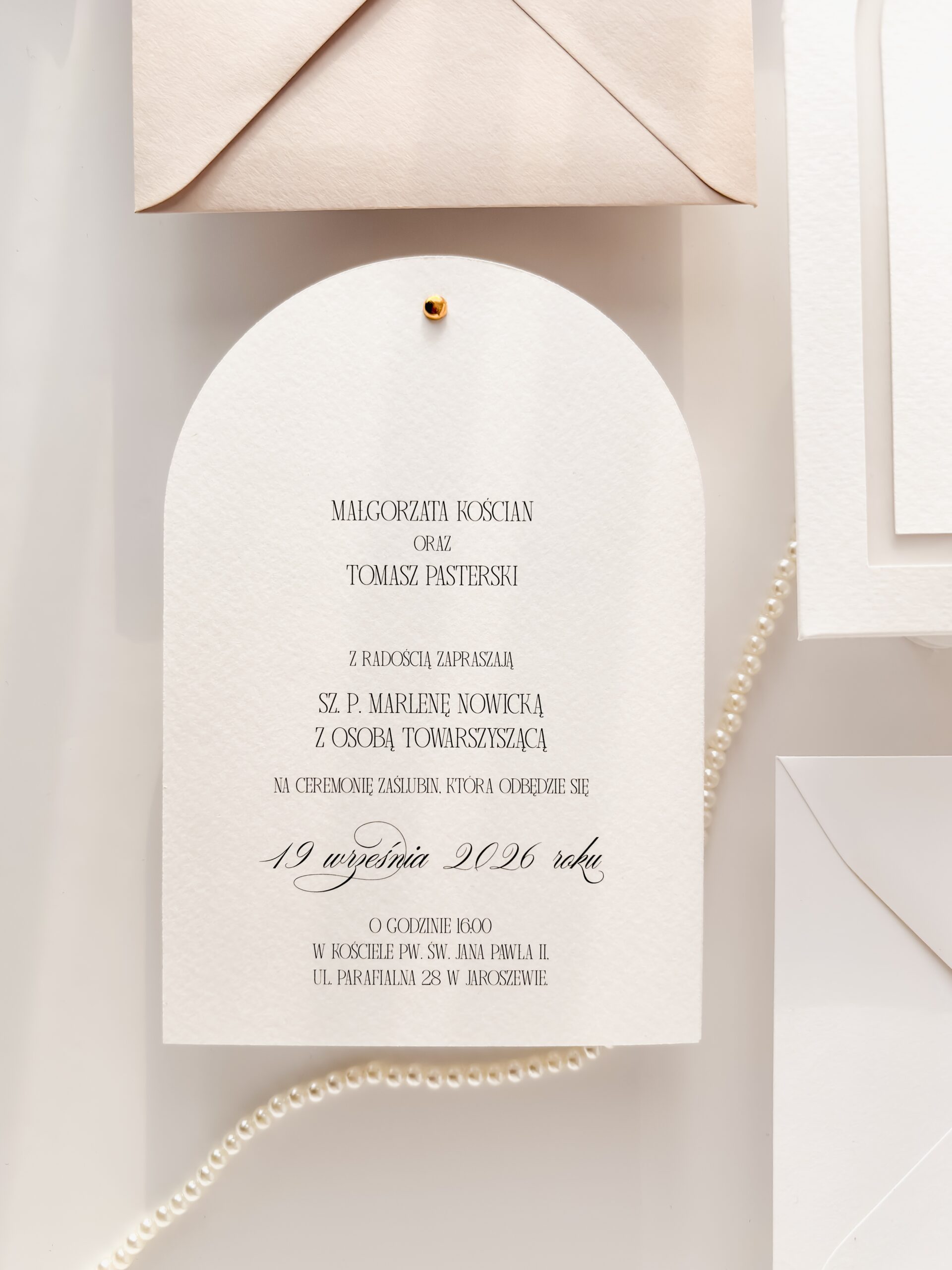 - złotą lub srebrną pinezkę łączącą karty zaproszenia,