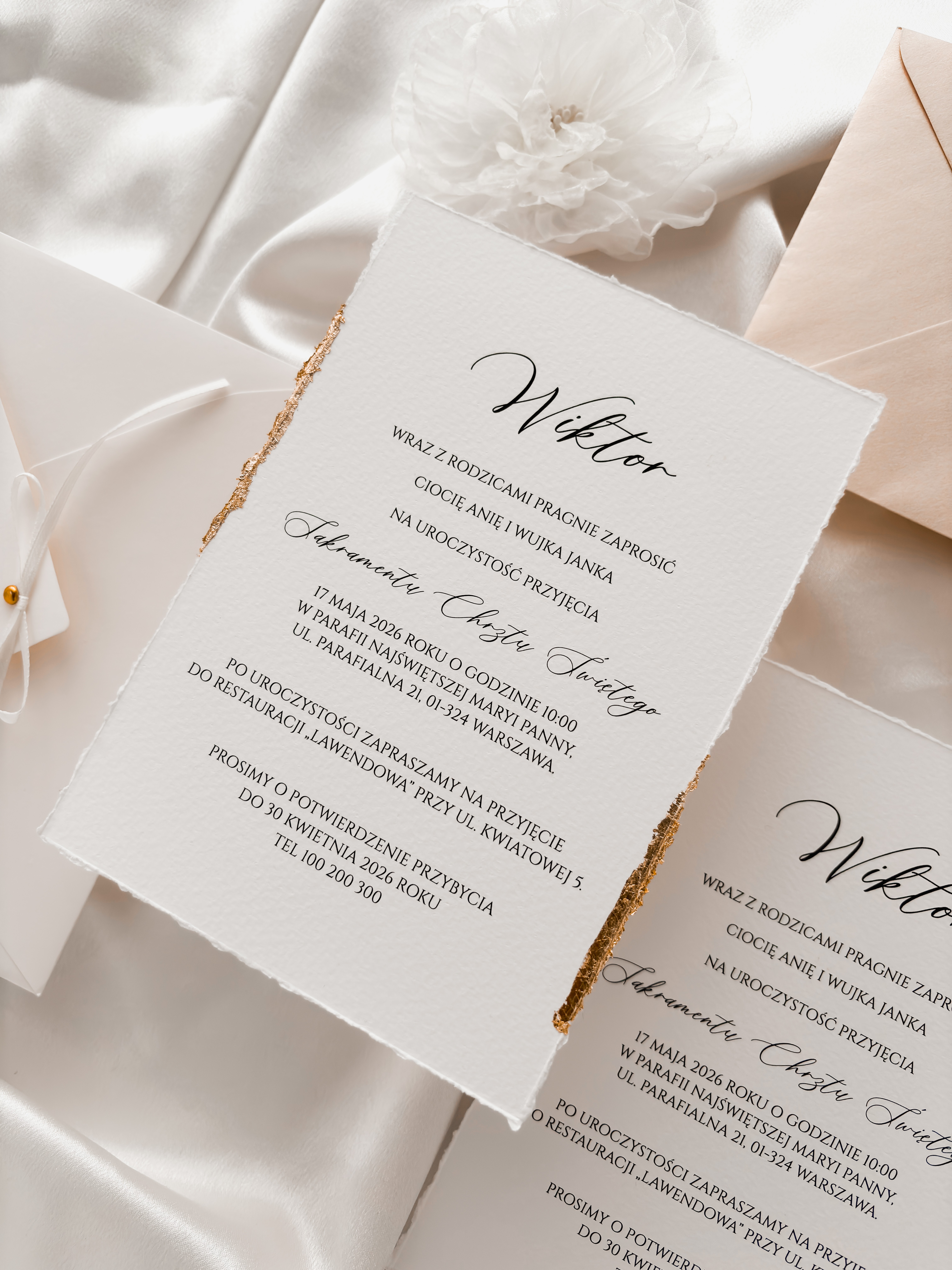 Chcesz zobaczyć zaproszenie na żywo? Zamów próbkę: dodaj 1 sztukę do koszyka i sfinalizuj zamówienie. Próbki nie są personalizowane, dlatego otrzymasz zaproszenie z przykładową treścią.