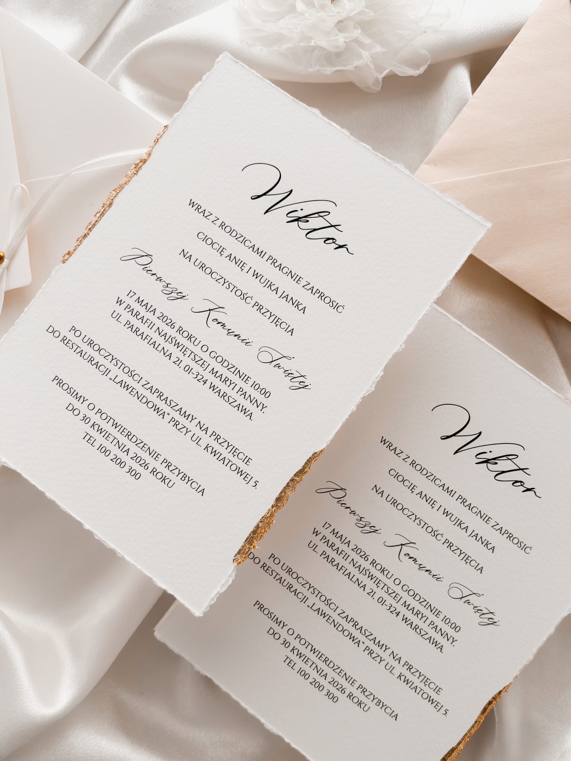 Chcesz zobaczyć zaproszenie na żywo? Zamów próbkę: dodaj 1 sztukę do koszyka i sfinalizuj zamówienie. Próbki nie są personalizowane, dlatego otrzymasz zaproszenie z przykładową treścią.