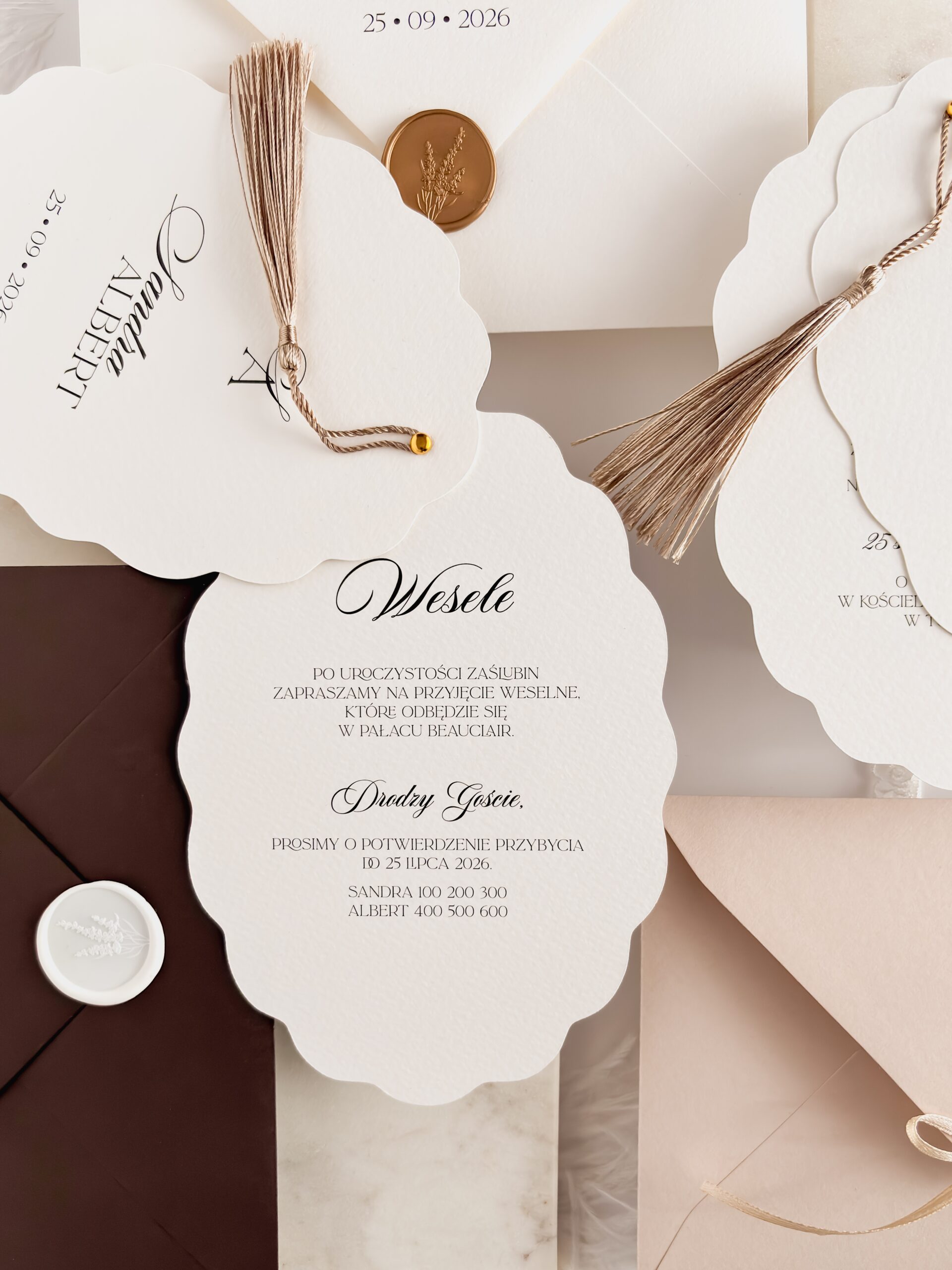 - trzy karty zaproszenia o gramaturze 250g/m2.