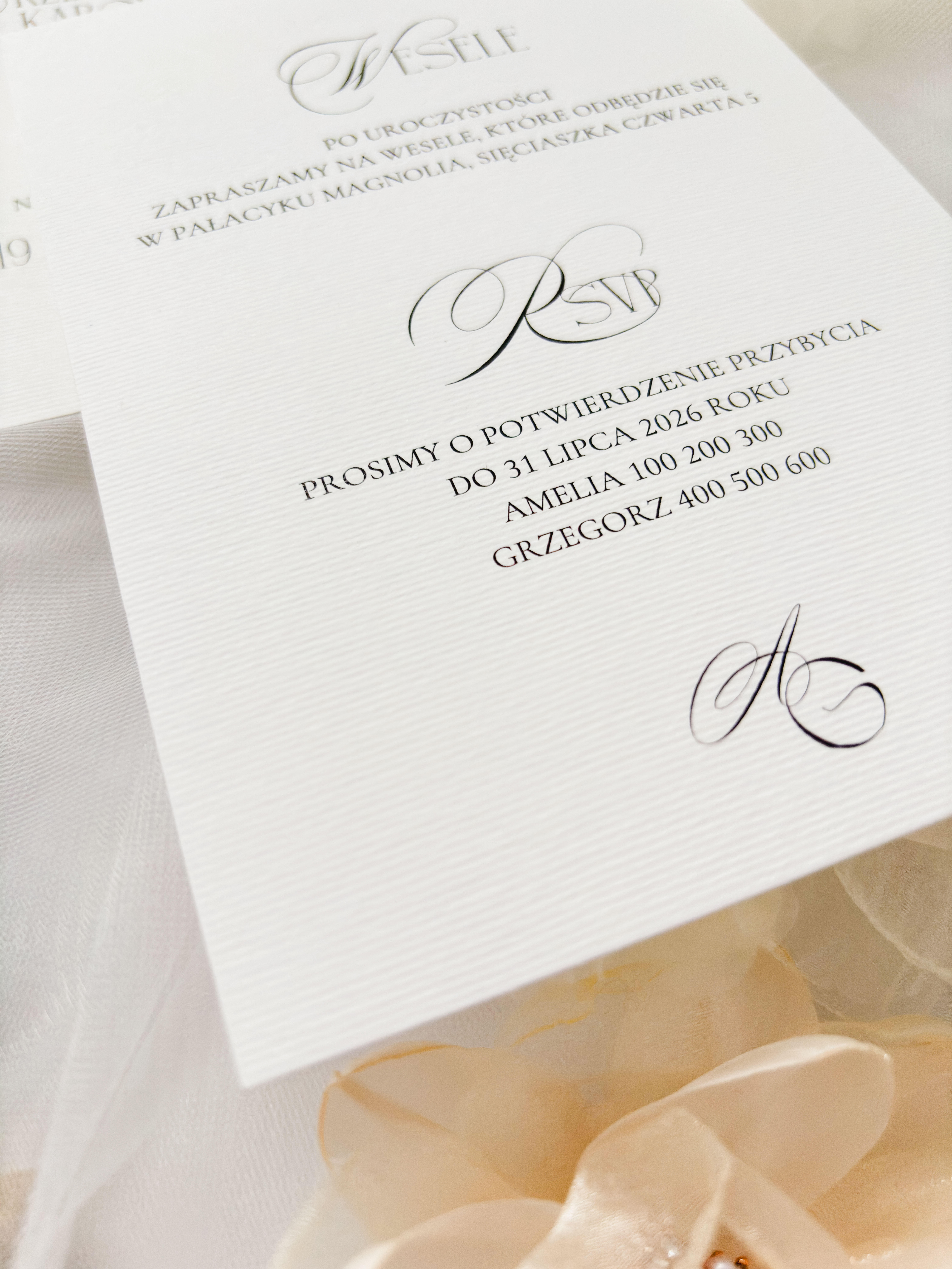 Po zaakceptowaniu projektu, prześlij mi listę z poprawnie odmienionymi imionami i nazwiskami gości, np. „Sz. P. Annę Nowak i Jana Kowalskiego”. Skorzystaj z formularza dostępnego tutaj.
